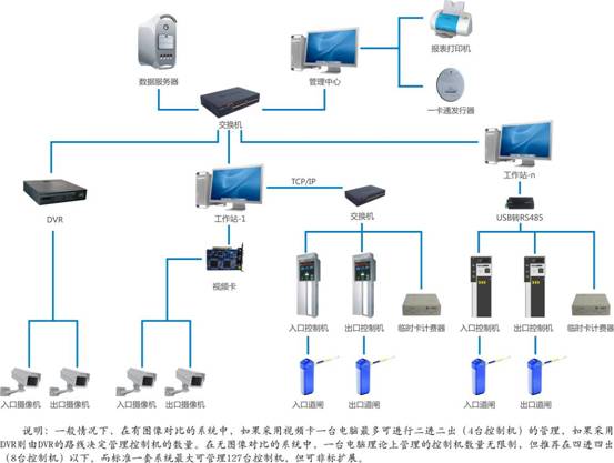 摄像机:对停车场进出口进行监控和录像,并由事件(如刷卡)触发进行车辆抓拍、车牌抓拍、人像抓拍、证件抓拍,并把图像数据上传至管理软件;